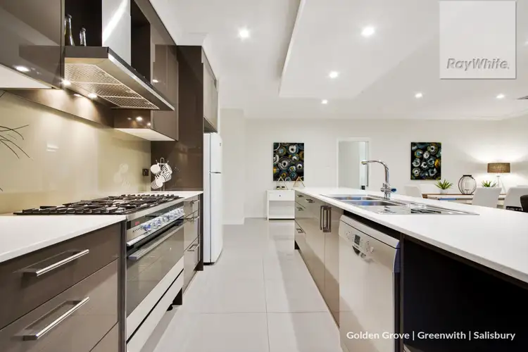 Continue through to the rear of the home the open plan family, kitchen and dining area which forms the heart of the home. The modern kitchen features all stainless steel appliances including a 900 gas cooker, rangehood and dishwasher for an amazing cooking experience as well as a generous walk in butler's pantry, stone benchtops, sleek and modern cabinetry and deep pot drawers for ample storage space. The chef of the home will further delight in the stylish island bench featuring bulk head ceiling with L.E.D downlights which overlooks the dining and outdoor alfresco so you can wine and dine in a setting for any occasion.