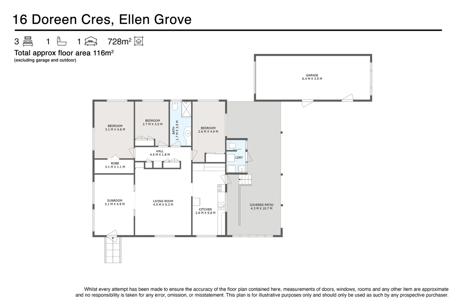 3 Bed • 1 Bath • 1 Car • 728m²