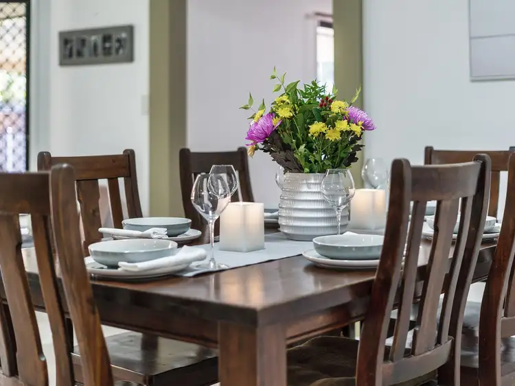 The easy care landscaped gardens have established fruit trees from banana, mango, chocolate fruit, paw paw & raspberry bush, with the bonus of side access, a level usable backyard for the pets and kids and additional parking areas for the third car, jet ski or trailer. A fantastic park and BBQ area large enough for the soccer and football match only 100 metres from your new home.