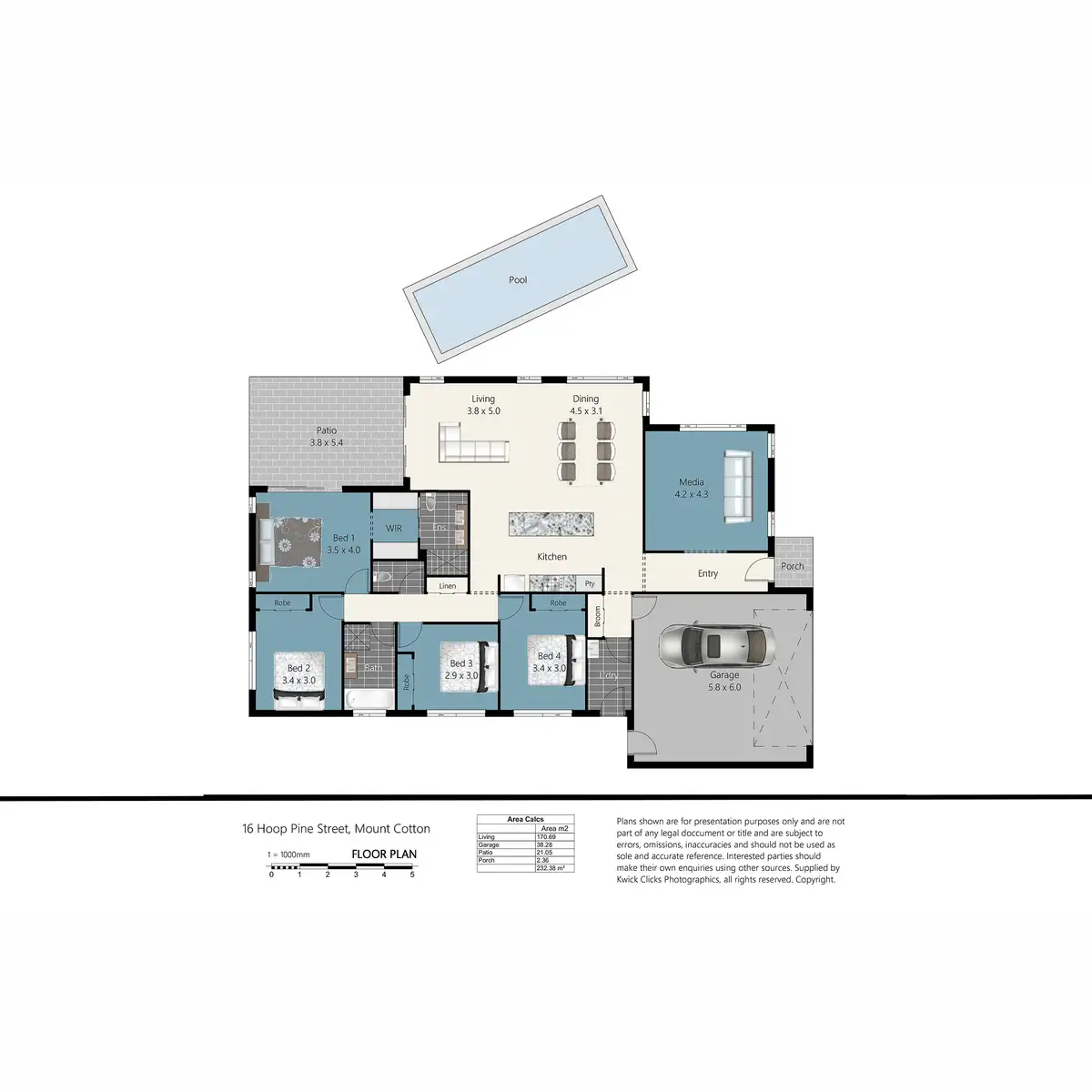 4 Bed • 2 Bath • 2 Car • 840m²