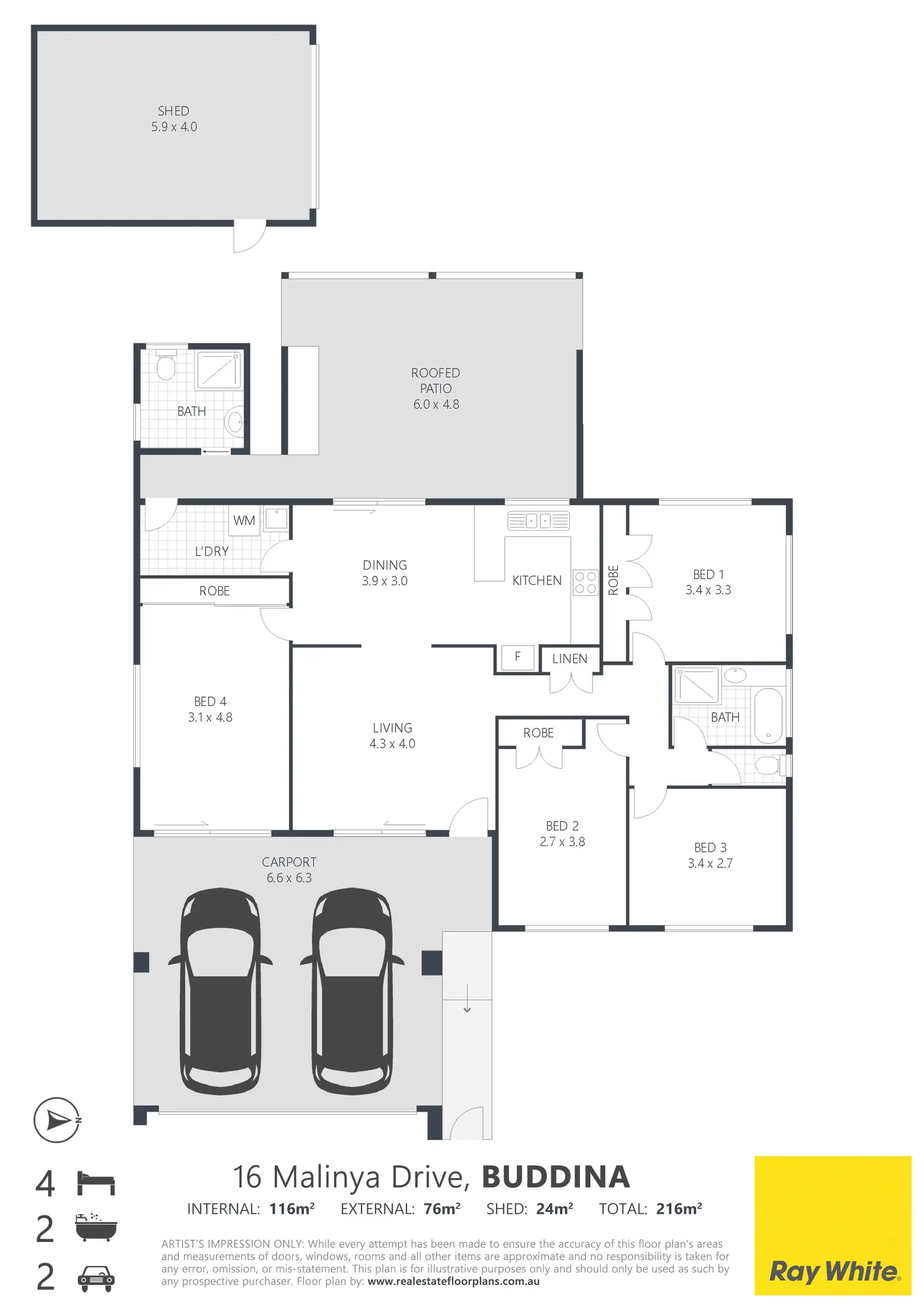 The home features four generously sized bedrooms with built-in wardrobes, two full bathrooms, and an original kitchen with ample storage. Tiled flooring flows throughout, offering both practicality and ease of maintenance.