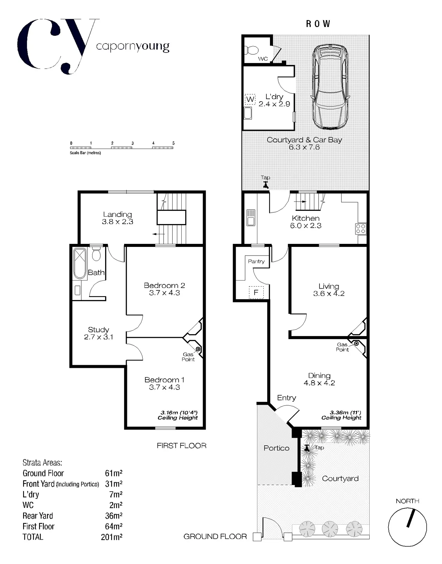 - North-facing rear