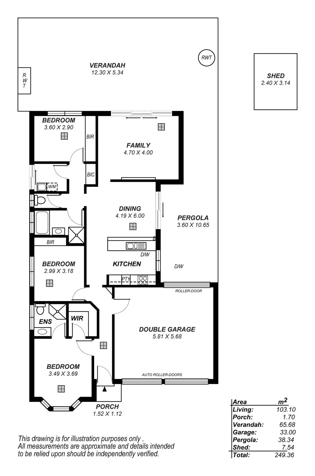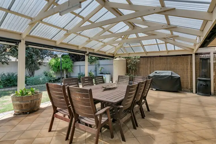Outside you will find two great entertaining areas. The first is just off the dining area, currently set up with outdoor couches, it has a flat roof and is partially enclosed for relaxing all year round with a quiet coffee. To the rear of the home, stepping out of the lounge room is a huge pitched verandah, absolutely perfect for large gatherings with friends & family. This wonderful area overlooks the low maintenance backyard, finished off with a lawn area for the kids, or dogs, and an established garden along the back fence. The front garden has also been well established with a manicured lawn and some lovely flowing roses. There is also plenty of off street parking and double garage with drive through access through a third roller door.