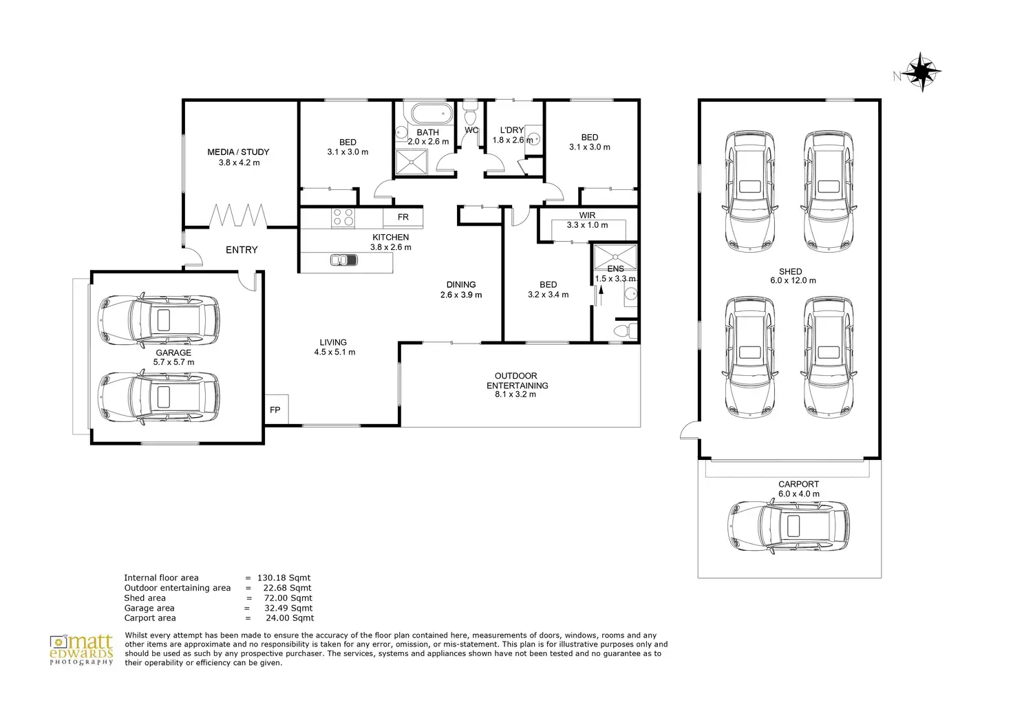 • Massive 6x12m shed with side access, plus a carport and double lock-up garage