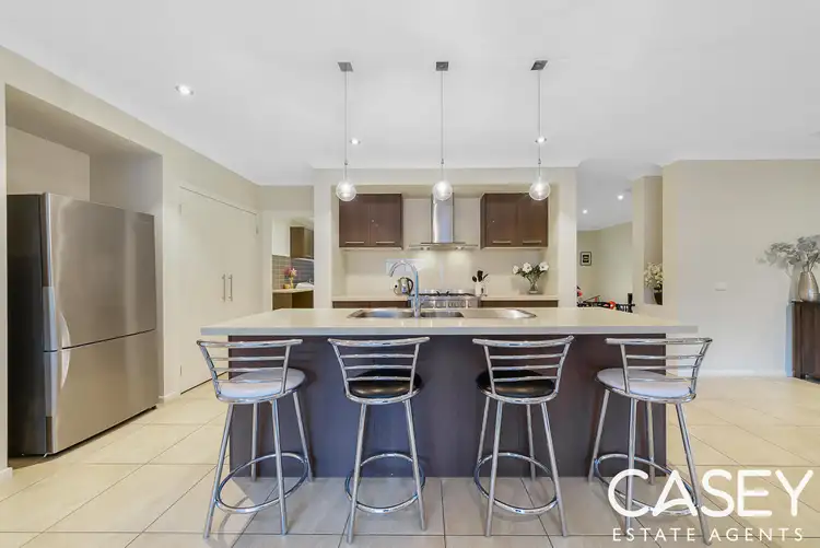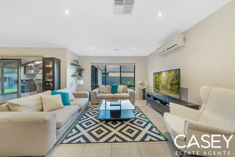 A modern brick facade, on a slightly elevated site, gives the property instant kerbside appeal This 4 Bedroom home presents with a display home calibre of perfection, this stunning residence features a sleek sense of design and style that flow effortlessly throughout the layout. A soft neutral colour palette compliments the luxury extras to create the perfect contemporary family home. Inside, setting the tone for this entertainer's delight, is a spacious, open plan kitchen, meals and family area that connects directly to the deluxe outdoor living zone. The sparkling kitchen, matching stainless steel appliances with 900mm cooker, stone benchtops, smeg dishwasher loads of storage cupboards, large island bench, is sure to make preparing delicious feasts a breeze whilst a second separate living room is the perfect home theatre to keep the whole family entertained. The generous master suite, positioned tranquilly at the front of the home, includes a walk in robe and full ensuite with his and hers vanities, large shower and toilet. The family "wing" consists of a separate living room, three generous sized bedrooms with built in robes and share a family bathroom with bath. High ceilings, ducted heating, airconditioning, modern accent lighting are also just some of the fantastic extra inclusions to love! Destined to be envied by all of your visiting family, friends and guests, the timber framed outdoor living zone offers next level entertainment space. With built-in kitchen, ceiling fan, radiant strip heater and provision for portable or built-in cooker, this stunning space is the perfect place to entertain, dine and relax all year round. Concluded with a low maintenance backyard, double garage for secure off-street parking and a fabulous location walking distance to Eve Central Shopping Centre, Children's Park, Hillsmeade Primary School, Berwick Spring Pavilion, Alkira College, bus transport and more, this property ticks every box!