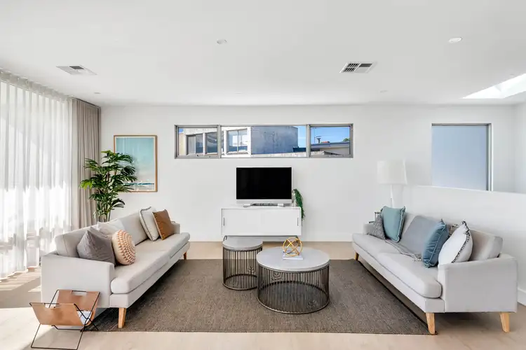 Upstairs this luxurious home continues to showcase the best of best with ocean views, generous open plan living, quality timber flooring and a gourmet kitchen which is the centrepiece of this contemporary family home and will be the envy of all your friends and family. The fully appointed kitchen features Caesar stone benchtops, Smeg stainless steel appliances with extra wide oven & gas cooktop, dishwasher, integrated fridge & a family friendly breakfast bar. A concealed butlers pantry will allow you to work seamlessly with plenty of storage options & space.