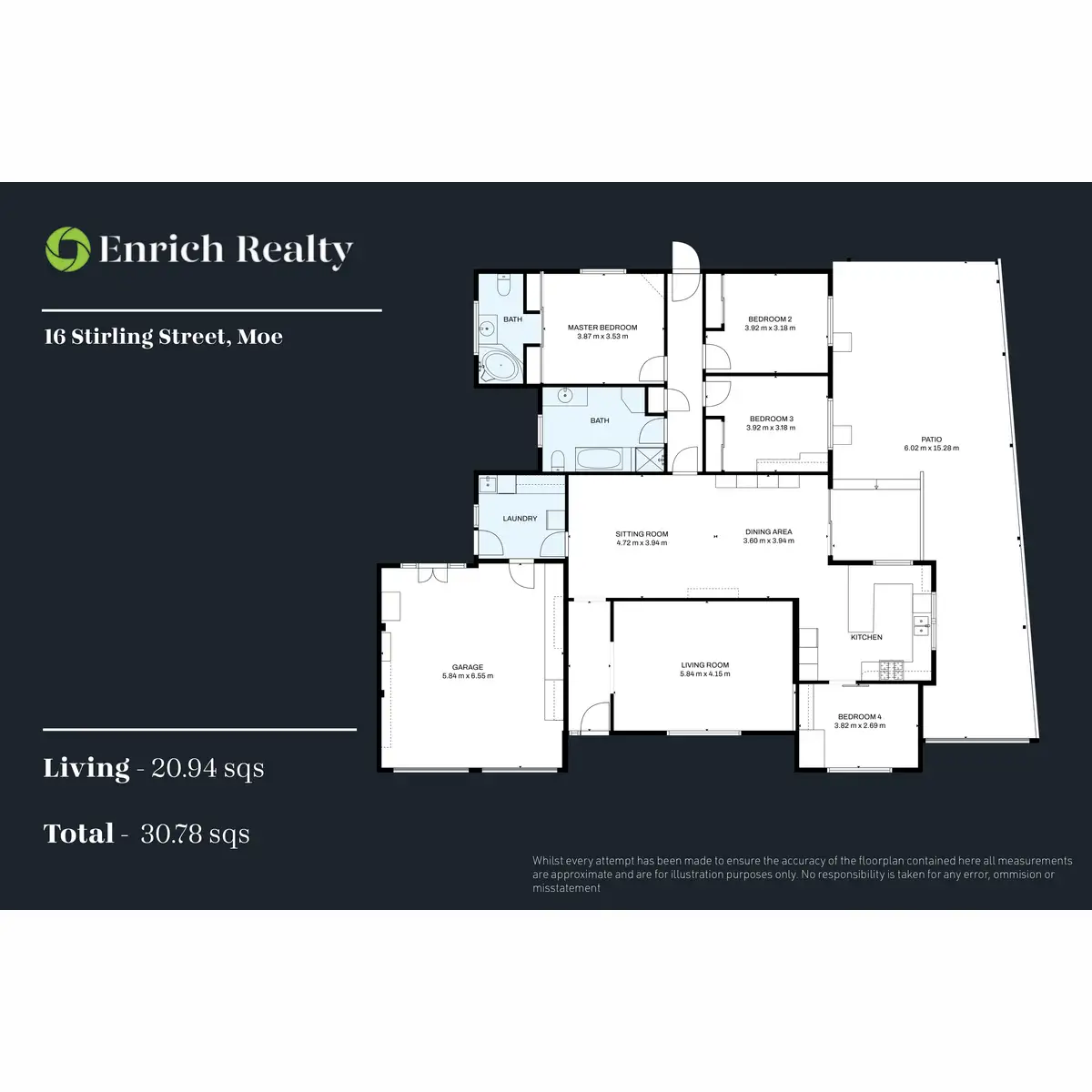 Each bedroom is comfortably carpeted and fitted with built-in robes, while the master suite is enhanced with mirrored wardrobes and a private ensuite, inclusive of a spa bath, offering a touch of refined luxury. Central heating ensures year-round comfort, and the main bathroom impresses with a bath and separate shower. A dedicated laundry off the hallway provides ample bench space and storage, adding yet another layer of practicality to this well-considered floorplan.