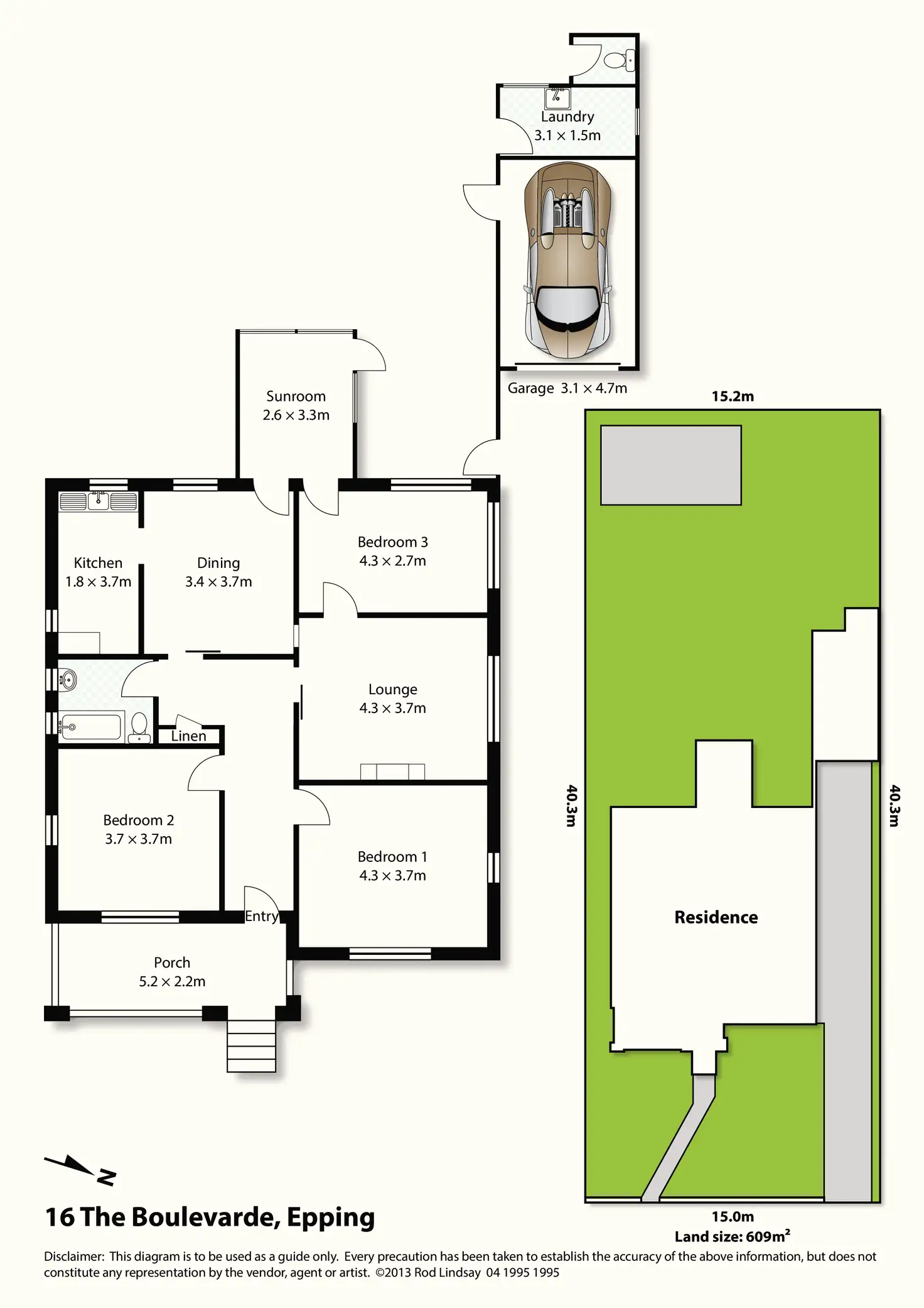 3 Bed • 1 Bath • 1 Car • 600m²