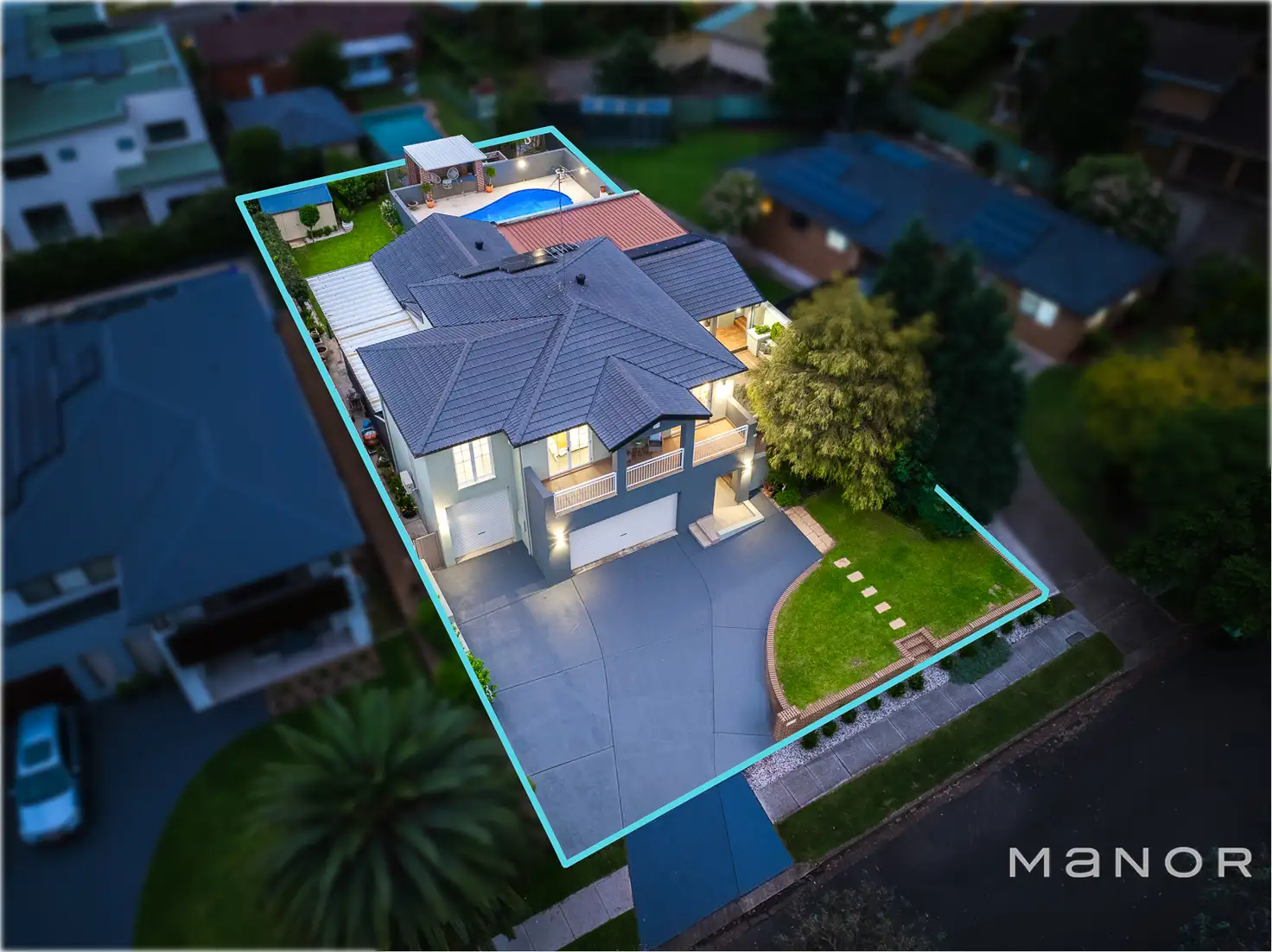 Designed with a highly versatile floor plan, this home blends modern living with chic luxury. Premium finishes are showcased throughout, from the elegant living spaces to the designer kitchen, which boasts sleek stone benchtops, high-end stainless steel appliances, and a spacious butler's pantry. Bathed in natural light, the open-plan dining and family areas flow to the outdoor undercover pergola with breathtaking views of the resort-style pool. Upstairs, four generously sized bedrooms offer a sense of space and serenity, highlighted by the master suite featuring a private balcony, dual walk-in robes, and a lavish ensuite with premium finishes. Downstairs, a versatile study easily converts into a fifth bedroom, perfect for guests, a growing family, or a sophisticated home office.