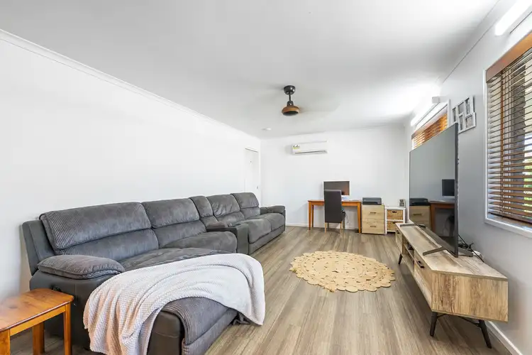 As you step inside, you're greeted by a large living area at the front of the home, this space is airconditioned, perfect for family gatherings or a cozy movie night. A second living area near the kitchen provides an additional sitting area, making it easy to unwind and enjoy everyday living. This area could potentially be used as an office or 4th bedroom. The kitchen itself is well-equipped with modern appliances and expansive bench space, catering to all your culinary needs. It's the perfect space for cooking up a storm, without feeling disconnected from the rest of the household. Adjacent to the kitchen, the dining area offers a seamless transition to the large undercover patio perfect for outdoor entertaining.