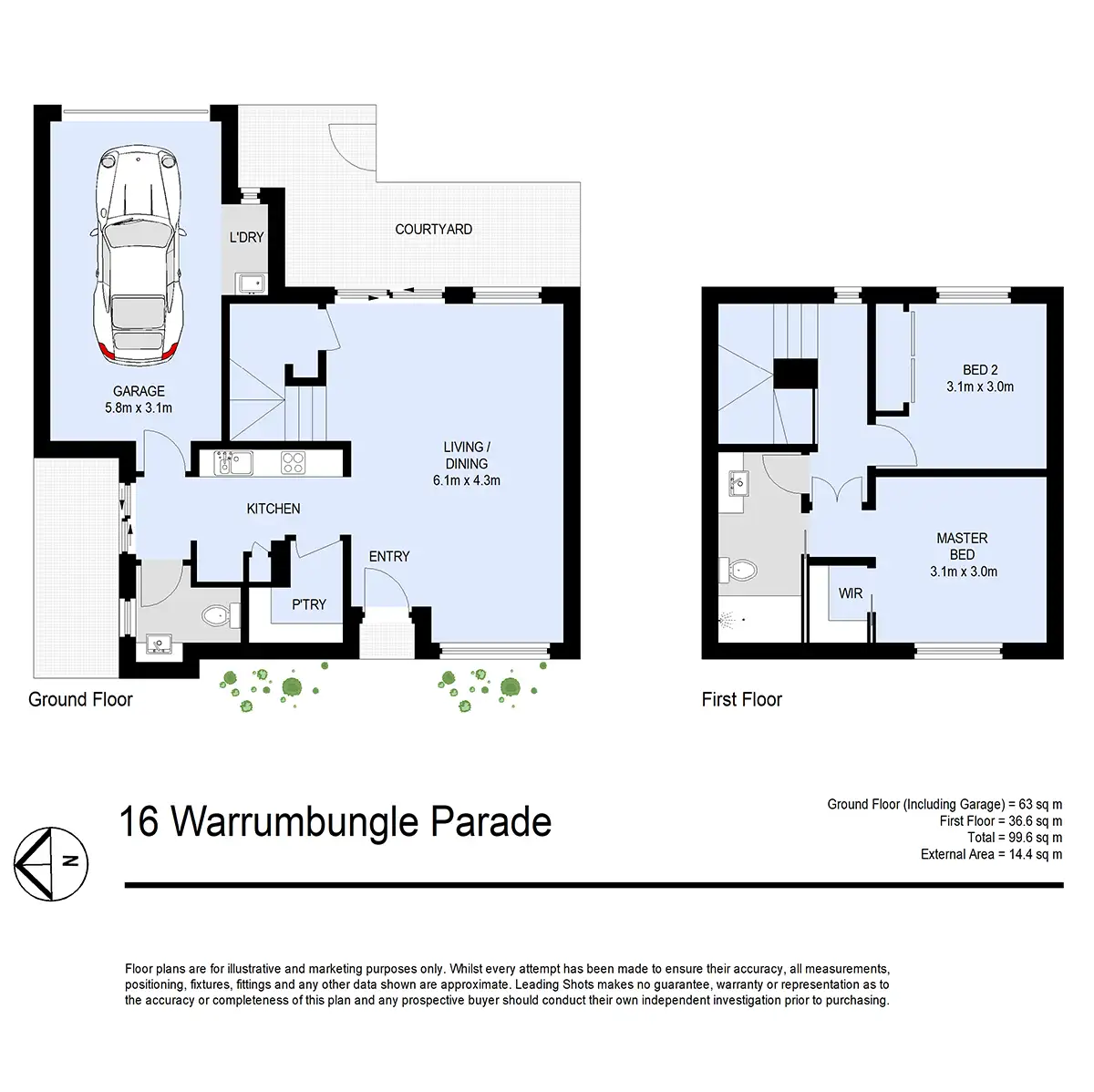 • Two fenced courtyards with timber decking.