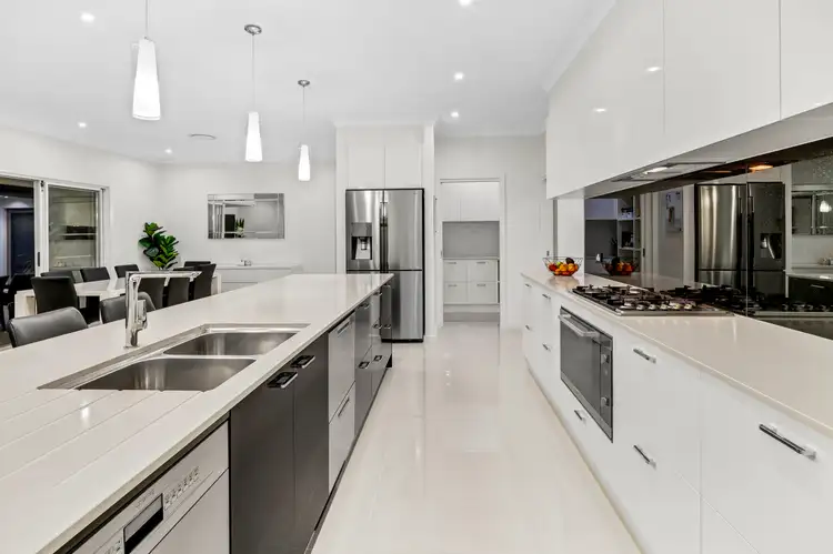 Presenting beautifully from the front, this exceptional, prestige family home on the Northern Gold Coast is ready to move into and enjoy right away. This home offers a full suite of generous inclusions, including high ceilings, modern fixtures, a multitude of living spaces and an ambience of elegance. The luxurious floor plan is built for the family, providing optimal space to relax comfortably and privately in the formal/casual living areas and extra-large bedrooms. The spacious master bedroom has a private ensuite with a double basin sink, large shower, stainless steel fixtures, separate toilet and an abundance of storage.