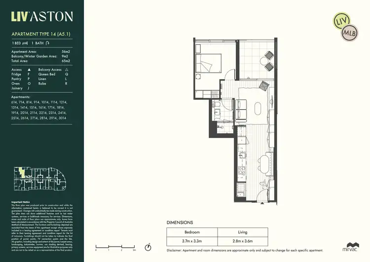 ^Internal images are not necessarily representative of the specific apartment listed. Views depicted are to be used as a guide only and are not to be relied on as representative of the final view. Views will vary depending on the level and location of the apartment. This online listing is indicative only and is not an offer or a contract.
