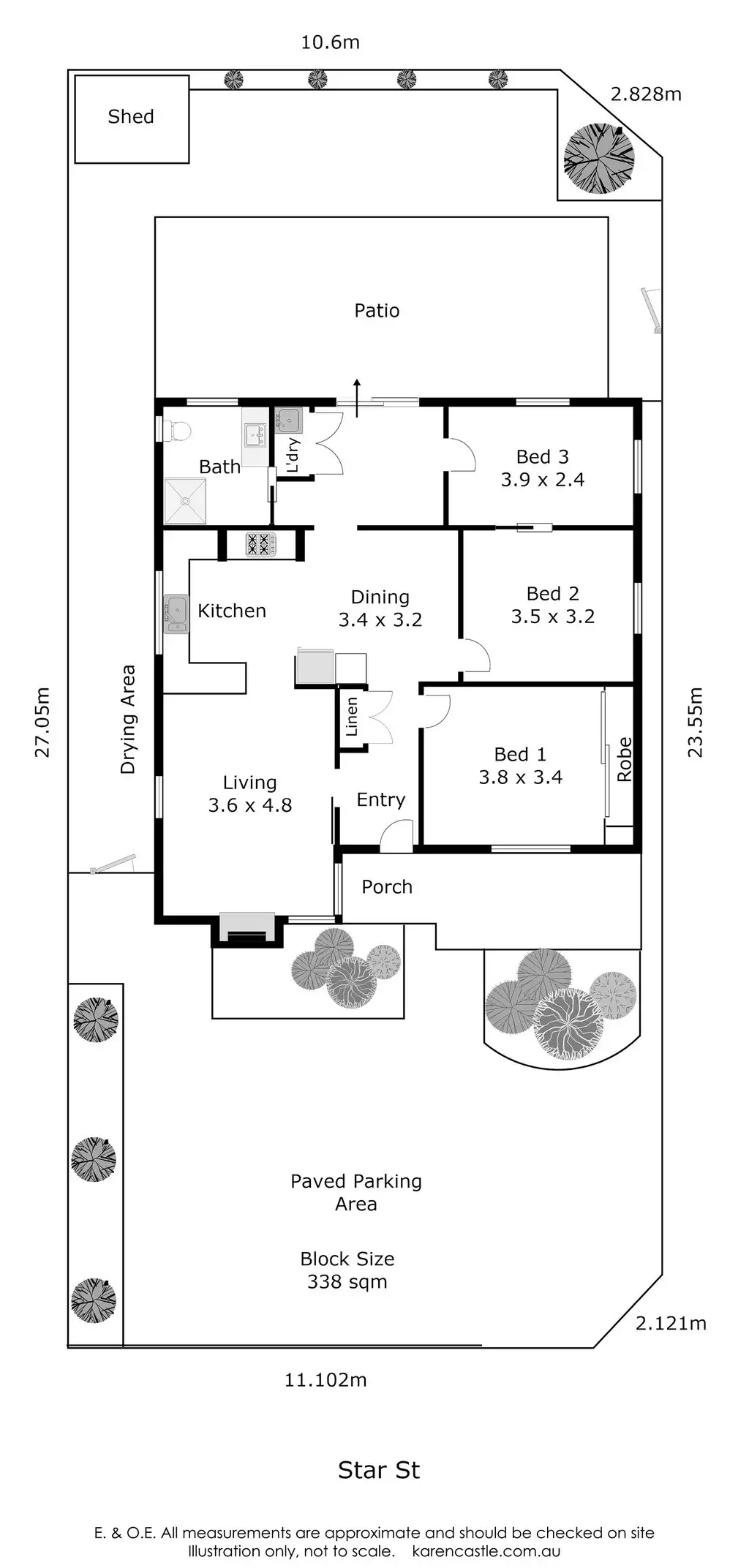 Two big bedrooms, the main boudoir boasting built in robes and a third smaller bedroom with split system, provide for your accommodation needs.