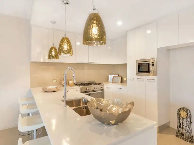 o Modern yet timeless designer light fittings which hang over the kitchen bar and set a warm tranquil mood in the hub of this home;