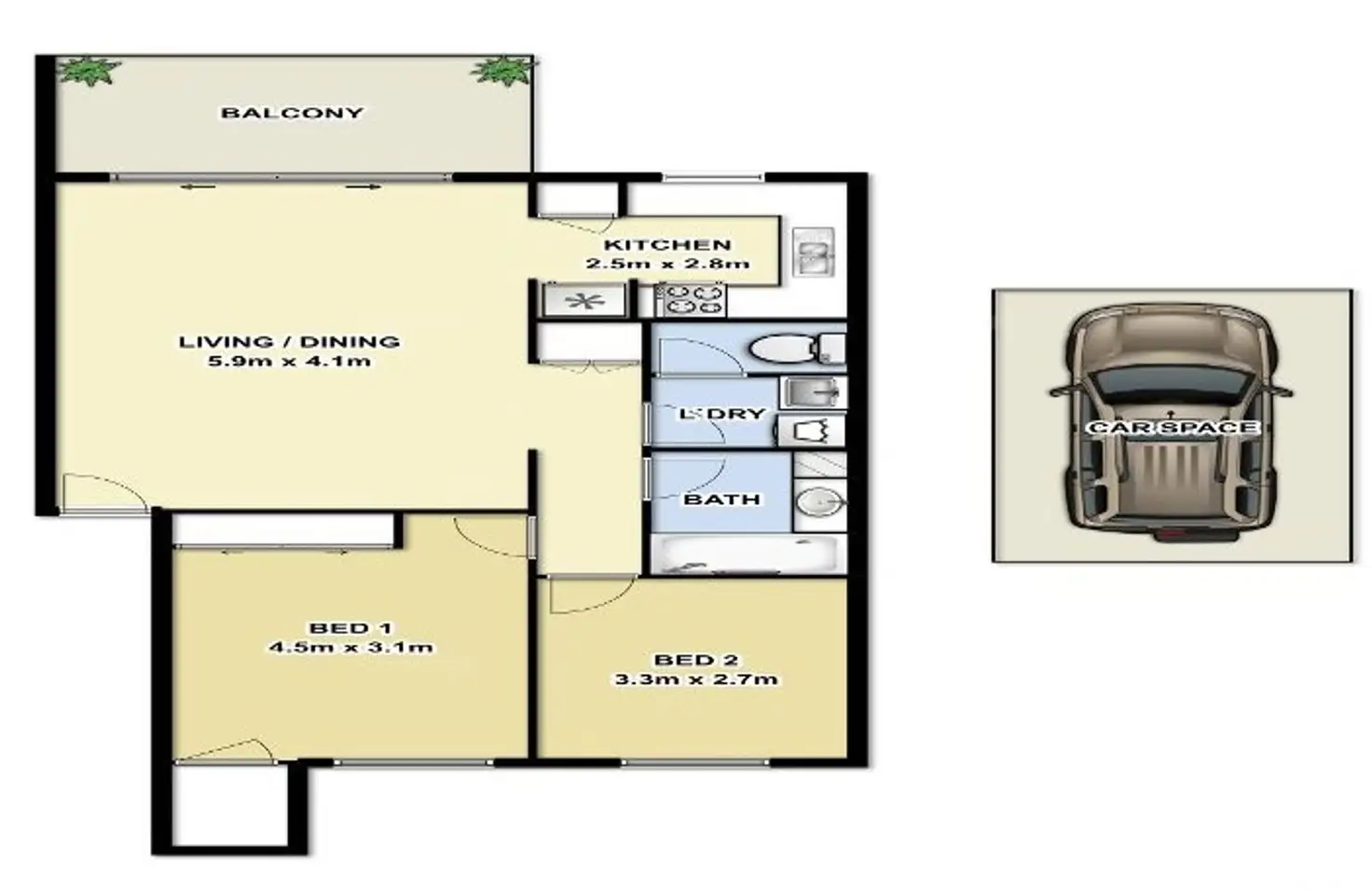 2 Bed • 1 Bath • 1 Car