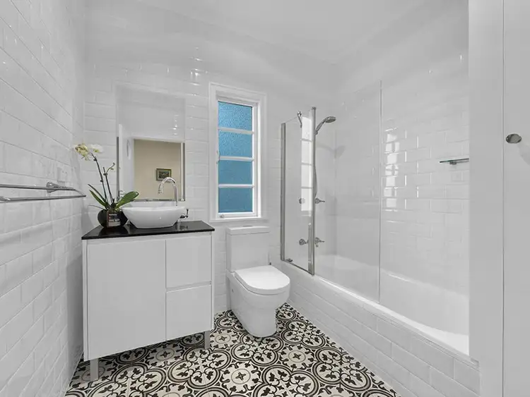 - The renovated main bathroom possesses a family friendly layout that is an exemplary take on timeless charm and character. Subway tiling from floor to ceiling adds an extra touch of quality.