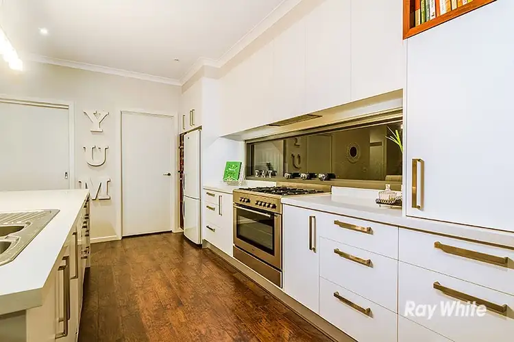 From the entry you will find the formal lounge which is wired for a home theatre plus the feature timber staircase before opening up to a vast family/meals area with a gas fireplace. The brilliant kitchen offers custom timberwork, walk in pantry, stone benches and stainless appliances including a 900mm oven/stove, dishwasher, built in coffee maker and microwave.