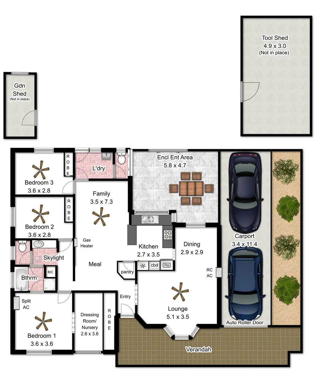 3 Bed • 1 Bath • 4 Car