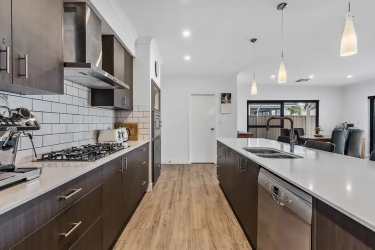 At the heart of the home is the stunning contemporary kitchen, designed for both style and functionality. Generous stone benchtops offer plenty of workspace and also serve as a convenient breakfast bar for casual dining. Stainless steel appliances add a sleek modern edge, while the walk-in pantry, dishwasher and extensive cabinetry ensure functionality and organisation are never compromised. For the entertainer, the kitchen's size and layout make hosting effortless, with plenty of space to prepare, serve and socialise all at once.