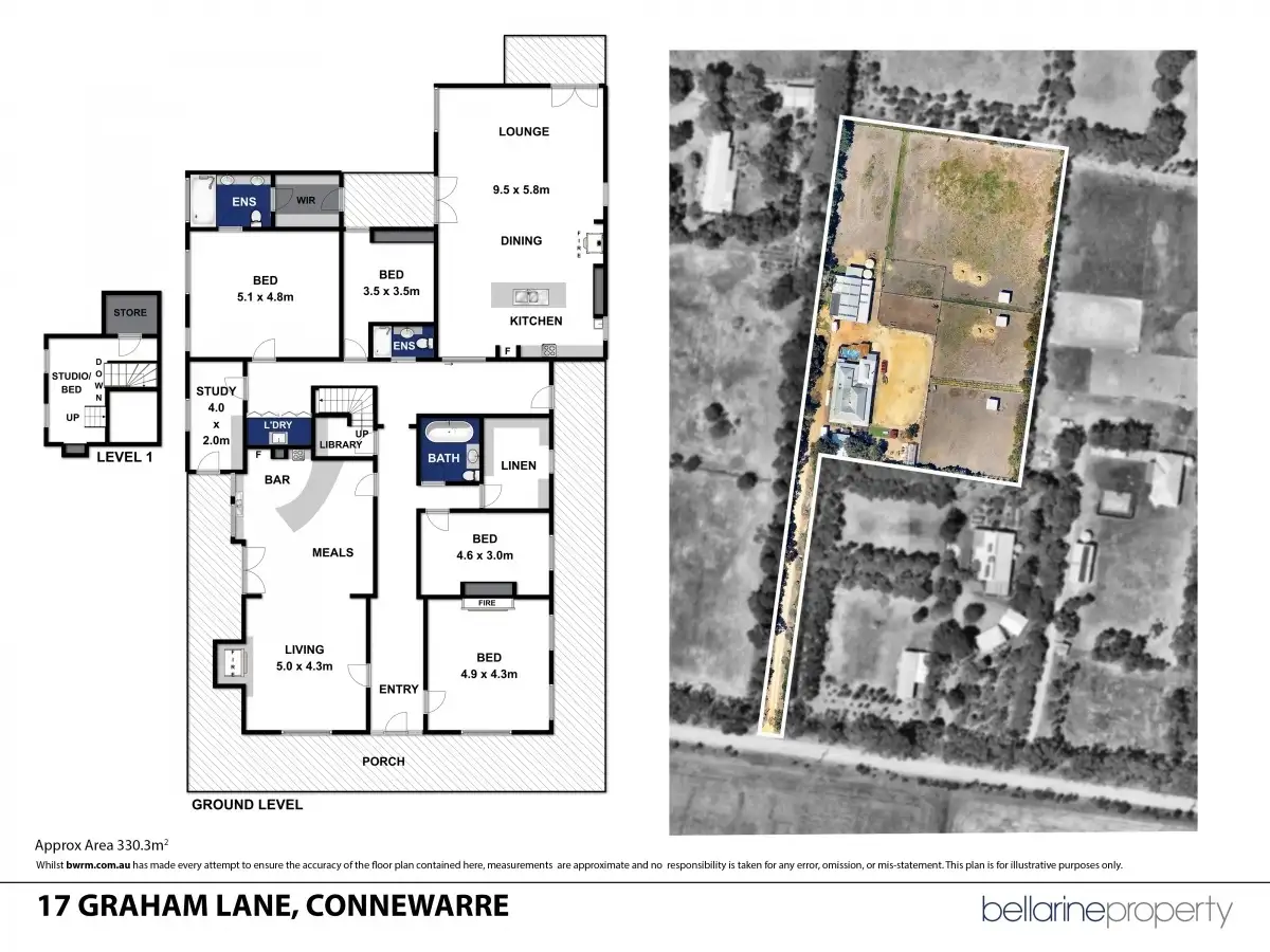-3 bathrooms, a library and storeroom with 50 lineal metres of shelving