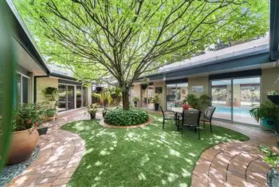 Enter via a custom designed wrought iron gate into the front courtyard, the whole house, including the extra large indoor pool room, is built around a stunning central courtyard which features a magnificent golden Elm tree. With vaulted ceilings and full length windows, light pours into this home.