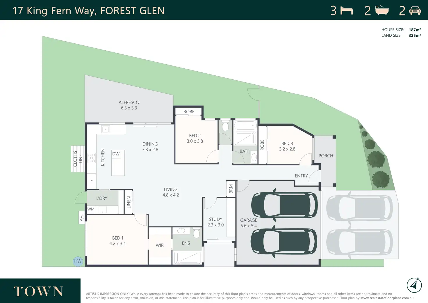 - Fenced 325m2 block, minimal maintenance