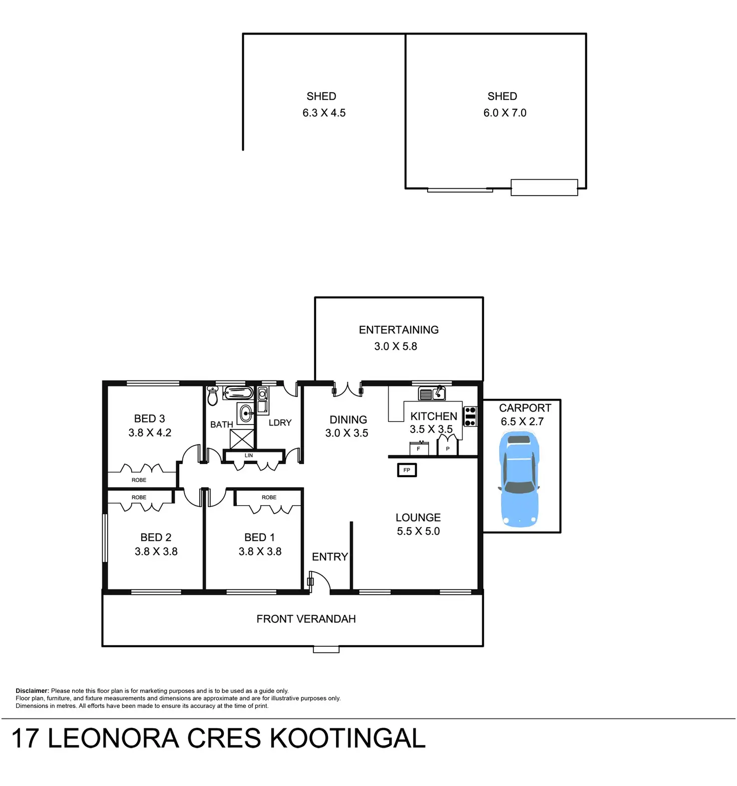 3 Bed • 1 Bath • 2 Car • 650m²