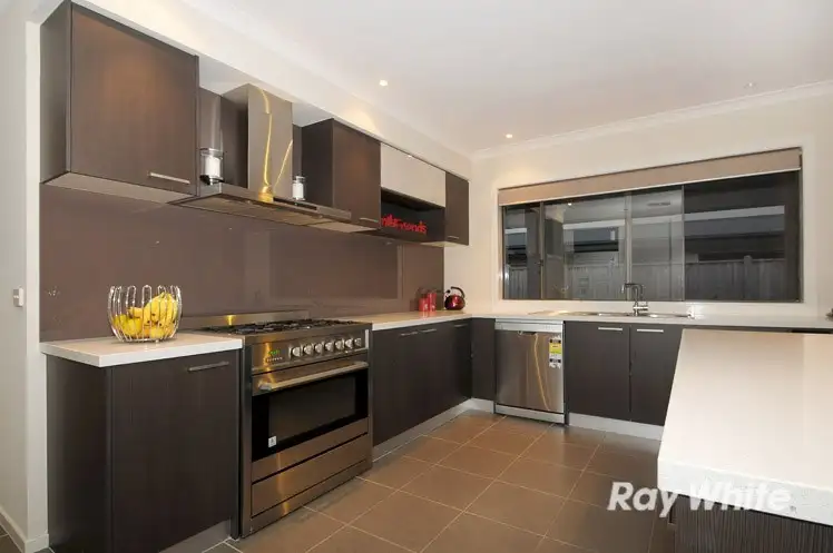 The central hostess kitchen is a chef's dream and is definitely one of the focal points. With an abundance of cupboard and bench space the quality stainless steel appliances are second to none and include a free standing oven with 5 burner hot plate, 900mm range hood plus a dishwasher. All of this and much more, complemented by an island bench with breakfast bar, caesar stone bench tops, glass splash back, in-built microwave provision, wide fridge cavity, wine rack plus an oversized walk in pantry!