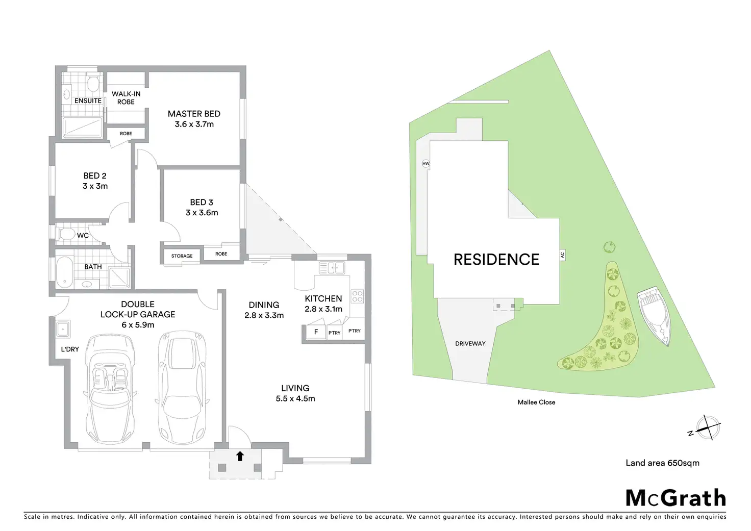 3 Bed • 2 Bath • 2 Car • 650m²