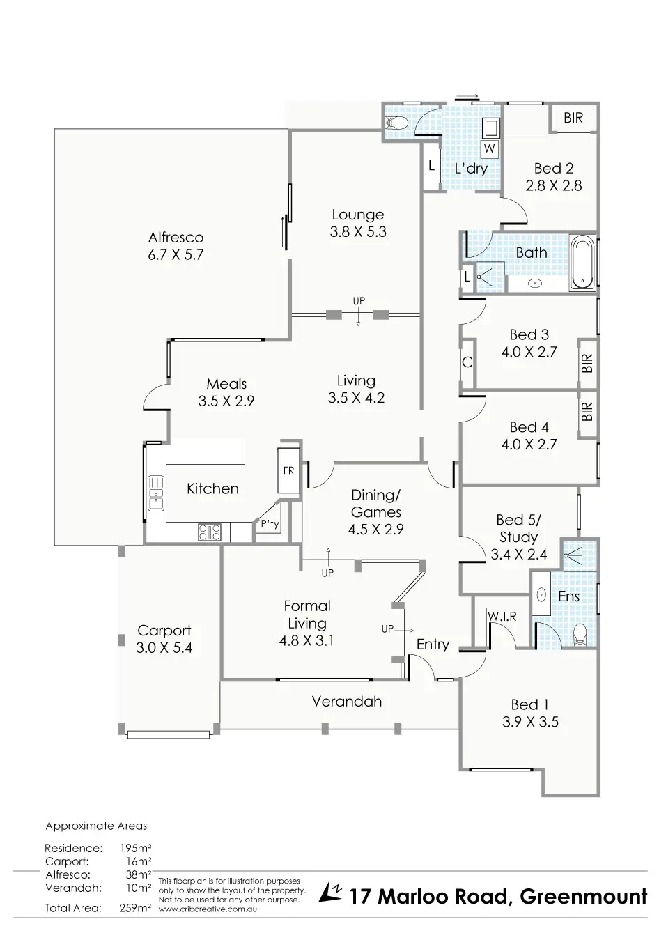· 5 bedrooms (optional study)