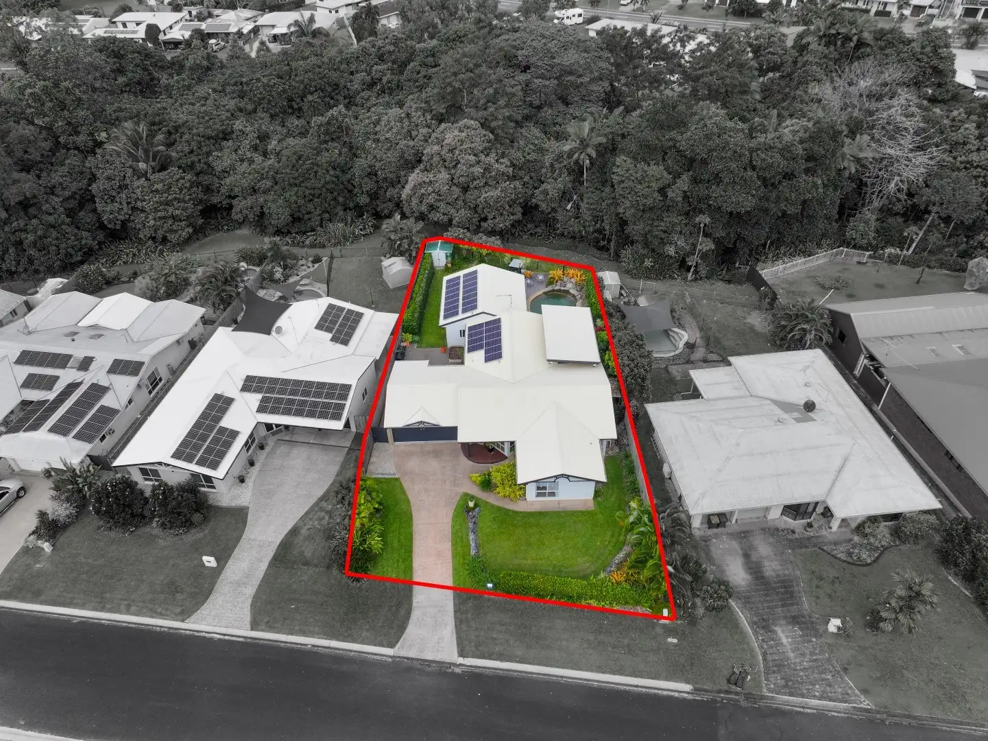 Multiple indoor and outdoor living spaces make this home perfect for family life and entertaining. The poolside oasis is a standout feature, complete with a timber deck and shaded setting nestled into tropical, landscaped gardens.