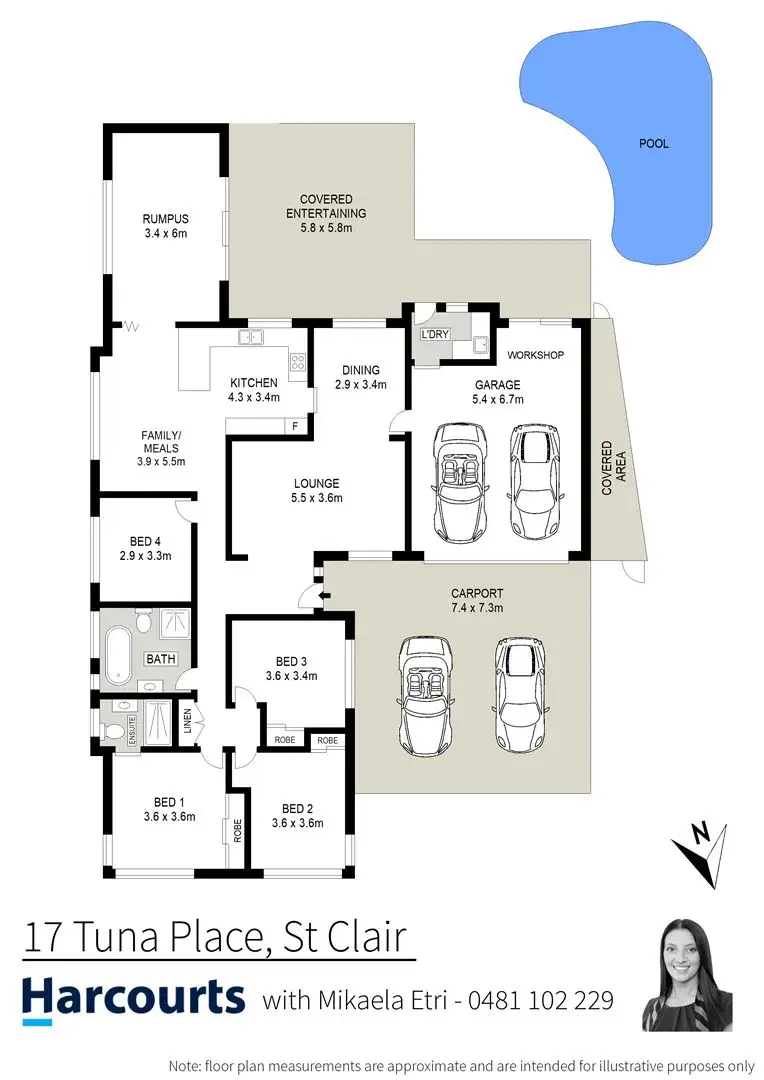 - Large double car garage + storage with automatic doors, internal access and a double carport.