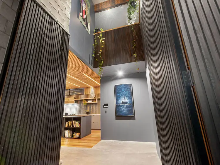 Commanding immediate street presence and respect, and presenting distinct modernist elements including burnt cedar timber finishes, the home provides exceptional living and entertaining options over three levels and plays to its natural surroundings perfectly. Intelligently designed to incorporate the original post war home, the meticulous floorplan maximises views, while the multi-level layout of the home provides private seclusion and functional family living. From the impressive hidden double door to the foyer entry, where the soaring voids take centre stage, to the stunning spotted gum timber and burnt concrete flooring throughout the home and awash with premium finishes, the interior spaces of the home integrate seamlessly with the exterior delivering unique style and privacy with every step.