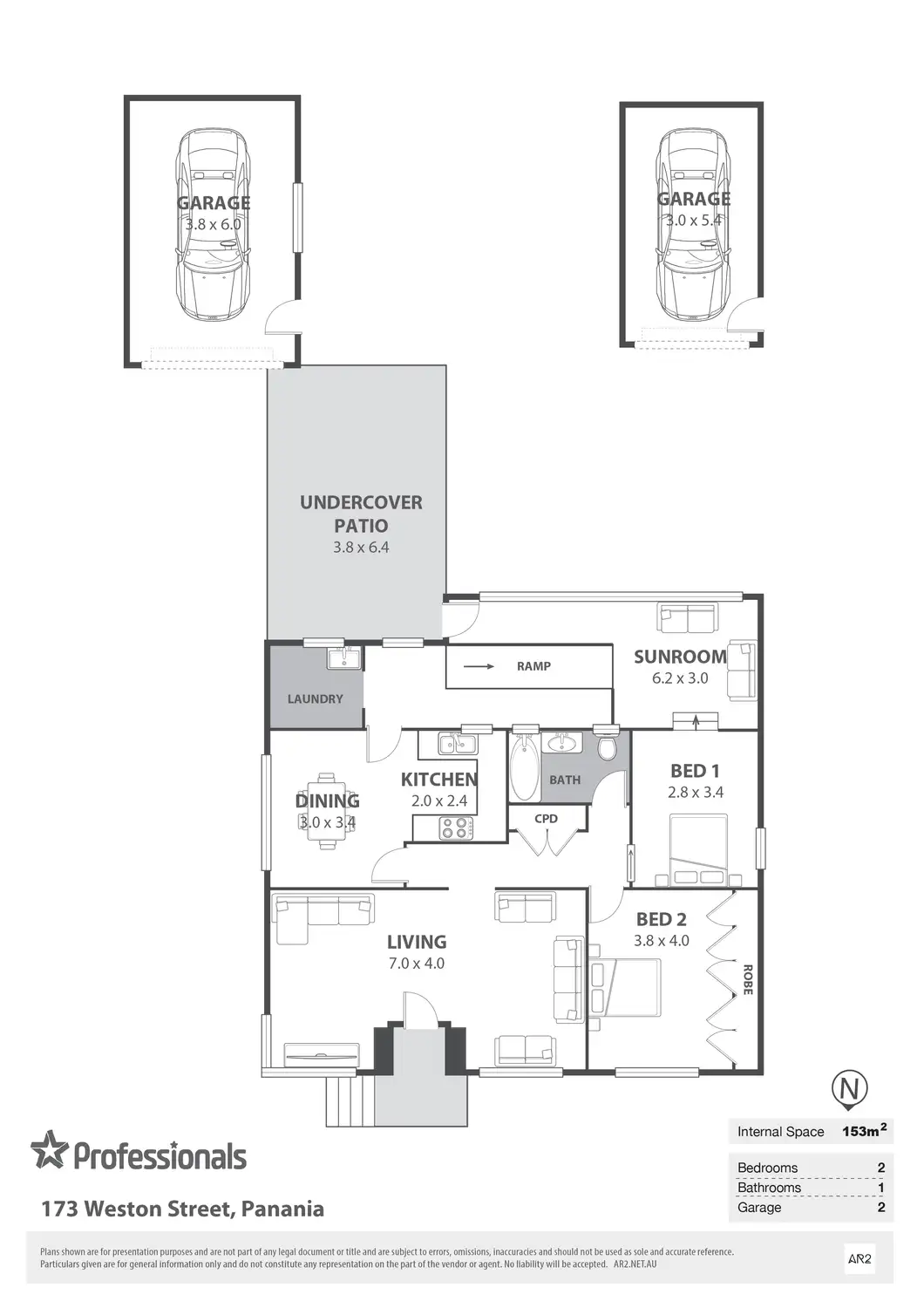 2 Bed • 1 Bath • 1 Car • 753m²