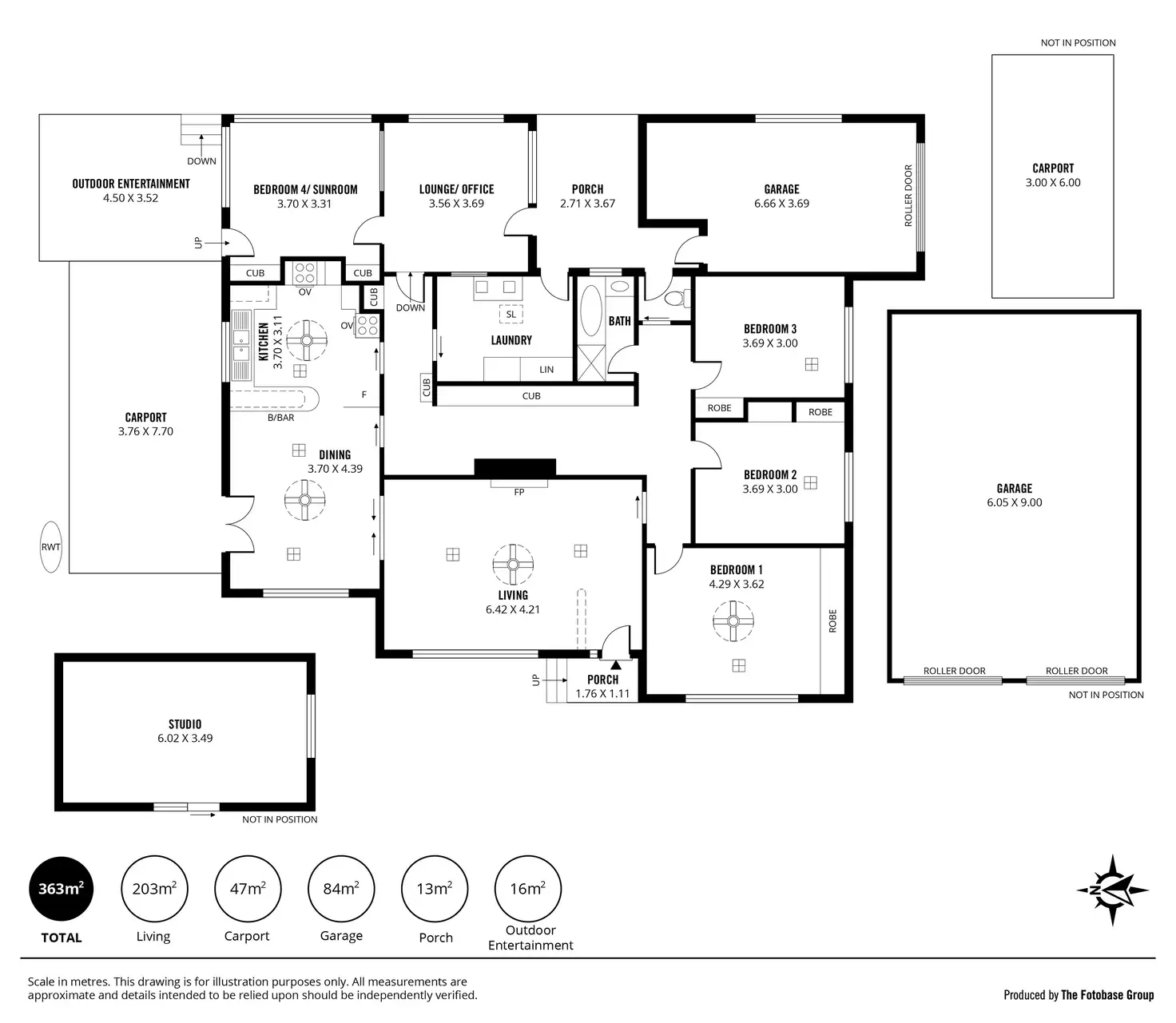 • 1 car garage under main roof with auto roller door