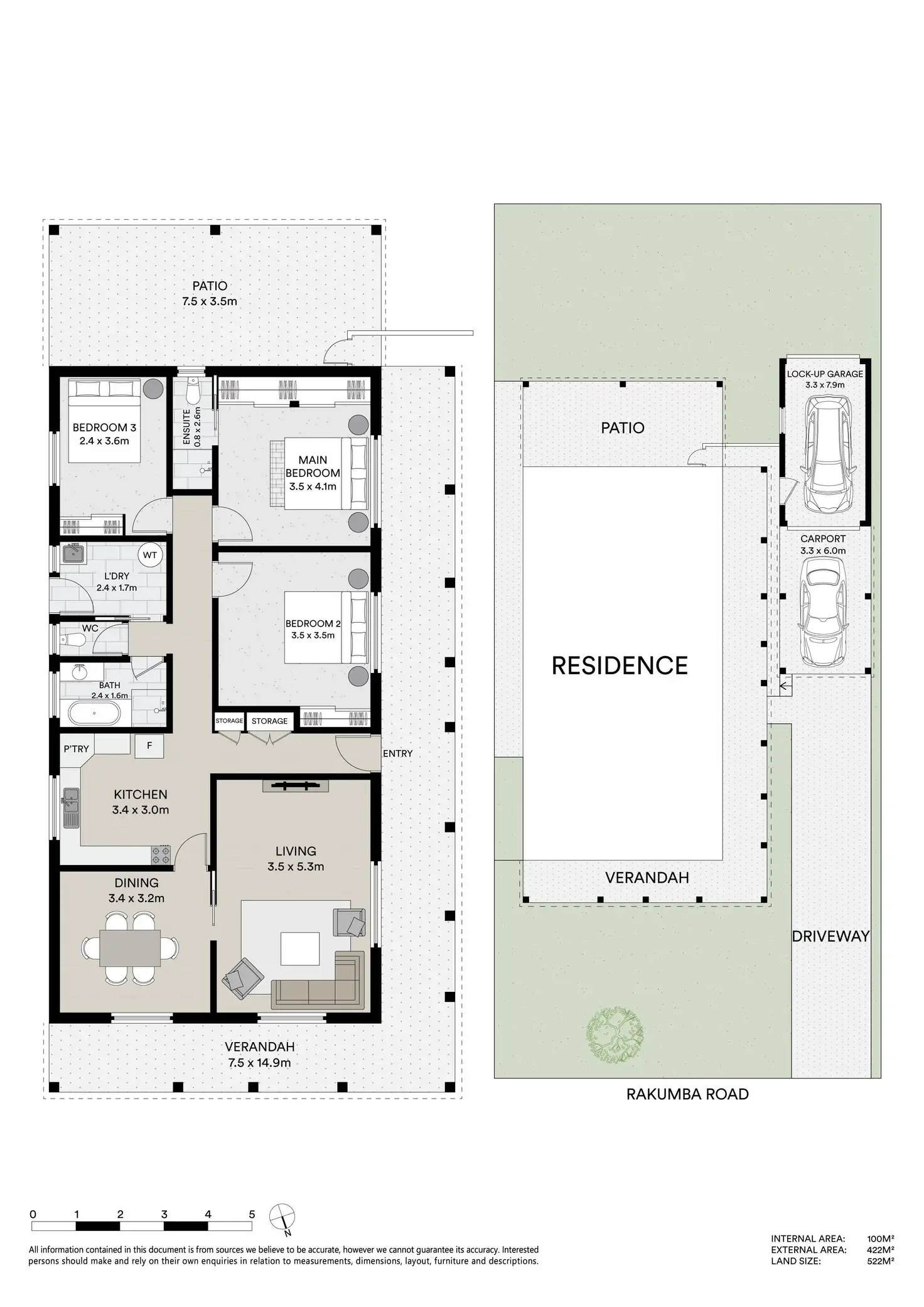 3 Bed • 2 Bath • 2 Car • 522m²