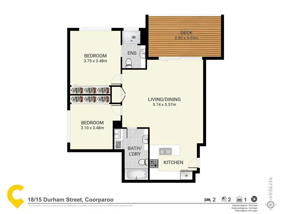 The living is easy and effortless, with well sized master bedroom inclusive of ensuite and built-in wardrobes and ceiling fans in both bedrooms.