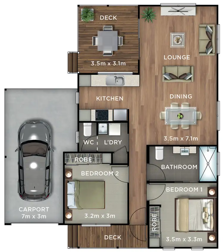 2 Bed • 1 Bath • 1 Car
