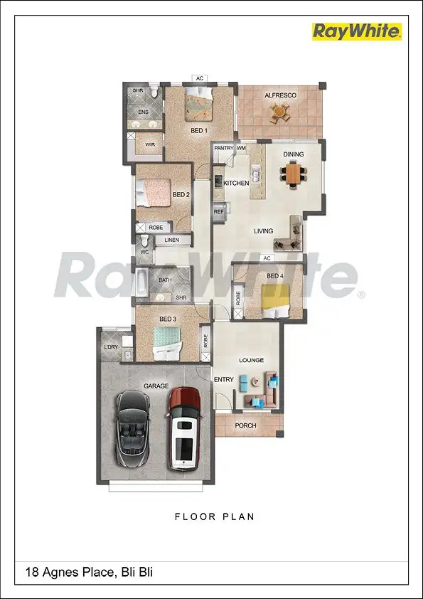 • Private master suite features: Ensuite bathroom, Walk-in wardrobe, Ceiling fans & air conditioning,Direct access to alfresco area