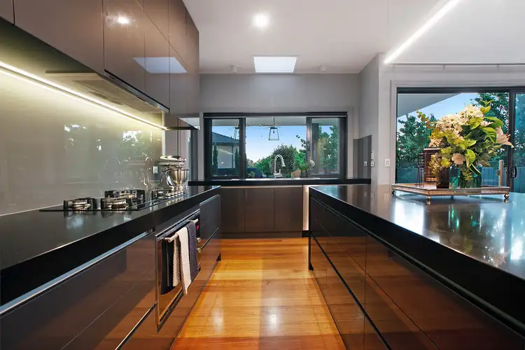 The well appointed modern kitchen has been created to an unequalled standard with Caesarstone bench tops and a full complement of Blanco and Fisher and Paykel appliances. Combined with an enormous butler's pantry, this kitchen equips the chef of the family with all the tools needed to host the largest of family gatherings with ease.