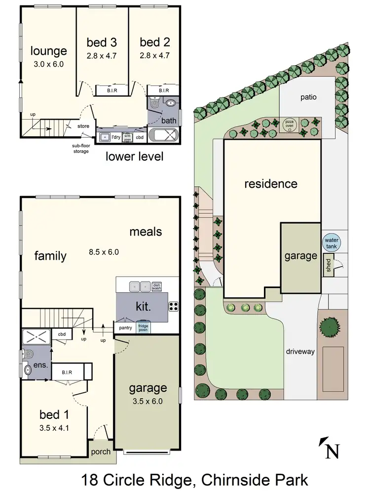 Sliding doors off the downstairs lounge lead out to a low-maintenance, private and secure backyard with an open entertaining area, beautifully shaped hedges, a built-in pizza oven and custom built decking which takes you up to the front of the property.