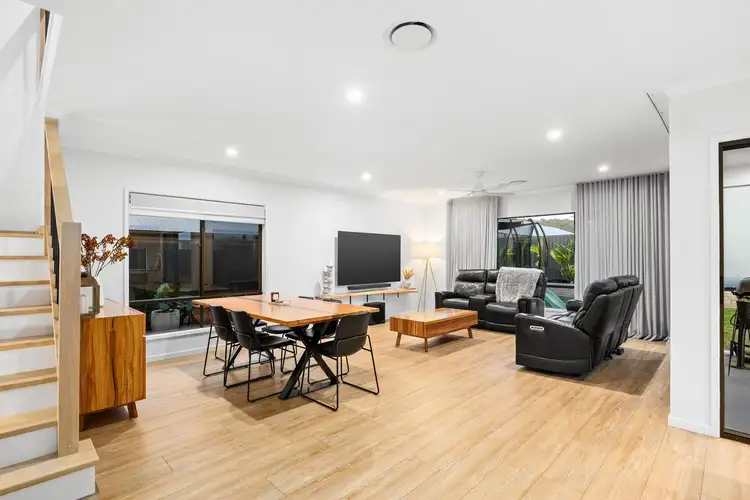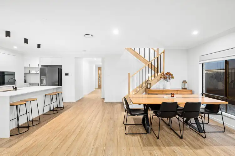 Designed for modern living, this double storey home blends sophistication with practicality. Featuring ducted air-conditioning, soaring ceilings, and a versatile fifth bedroom with full bathroom downstairs, it's ideal for multi-generational families or buyers that host long-term guests. The stylish kitchen boasts stone waterfall benchtops, gas cooking, and a large walk-in pantry, while open-plan living flows to an inviting alfresco. With multiple living zones, a generous yard, solar system, and smart home features, this residence promises comfort, style, and convenience.