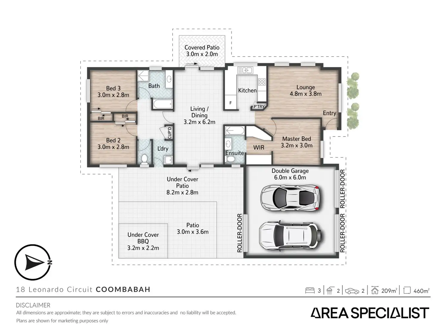 3 Bed • 2 Bath • 2 Car • 460m²
