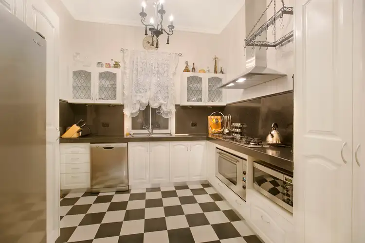 Three bedrooms upstairs, 2 with built-in robes, exquisite bathroom with separate shower & central freestanding clawfoot bath. Study niche has been created at top of stairs ... Kitchen is true to style and well appointed with direct entry to dining as well as hallway entry ... easy & practical!