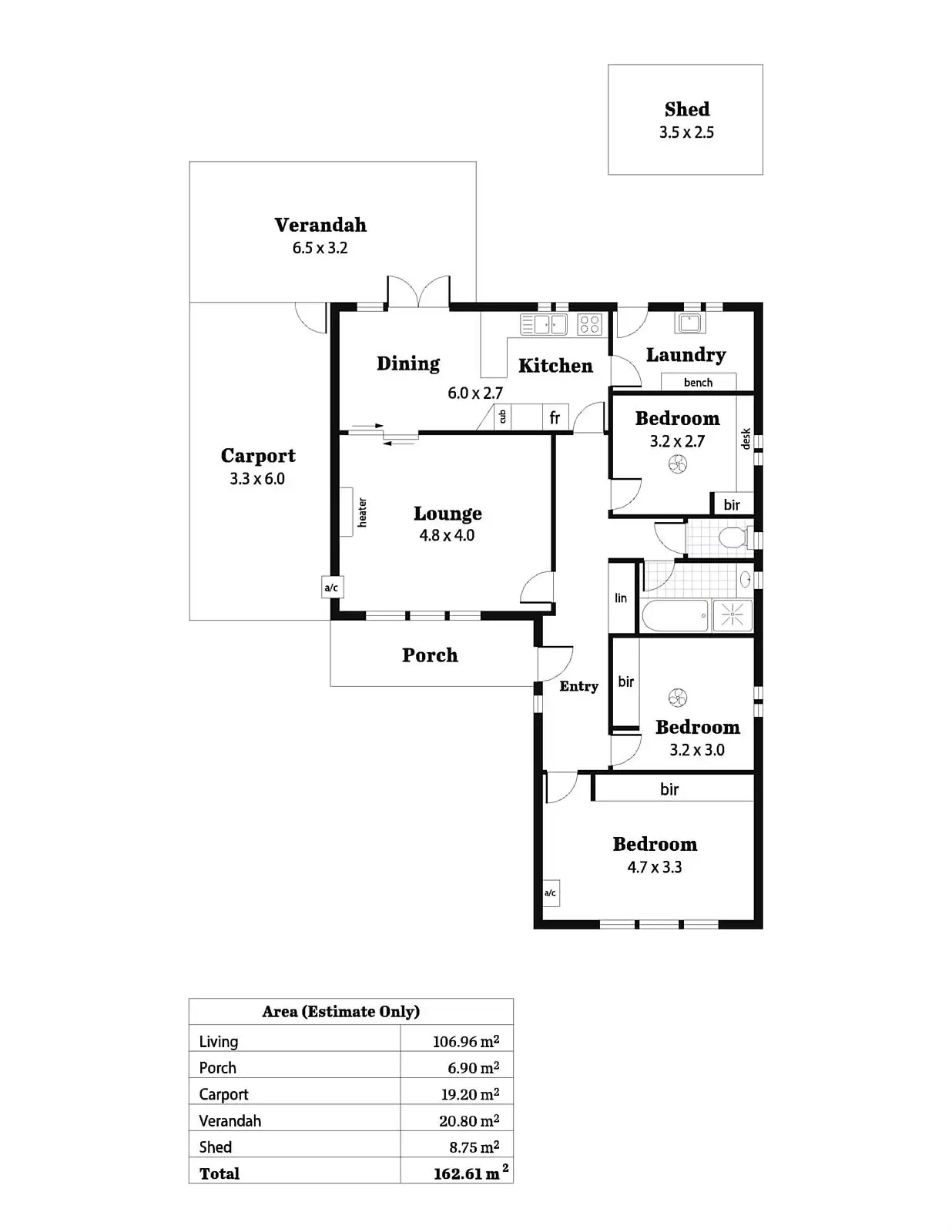 - Ceiling fans to Bedrooms 2 & 3