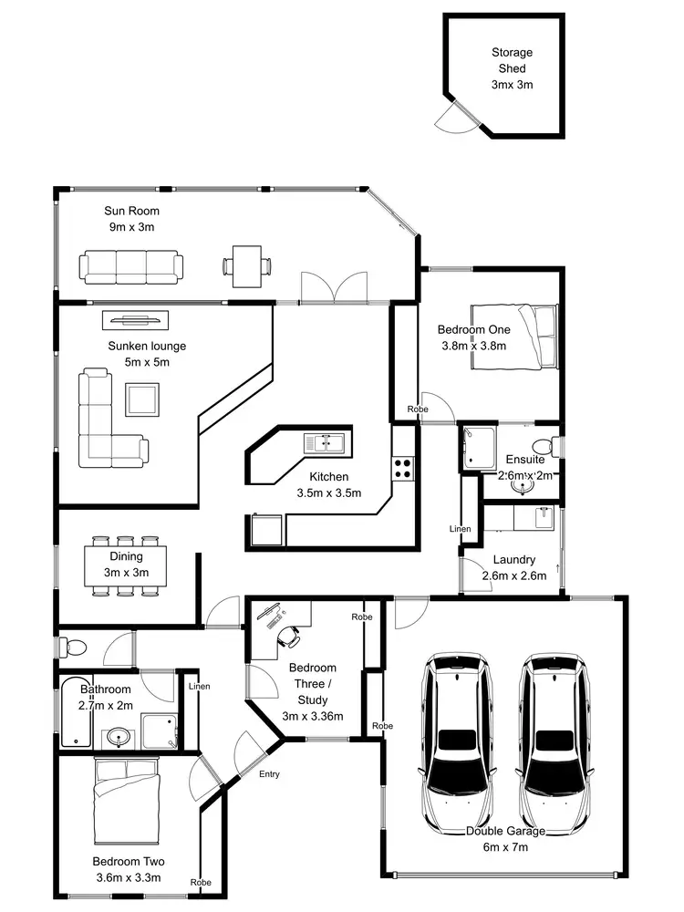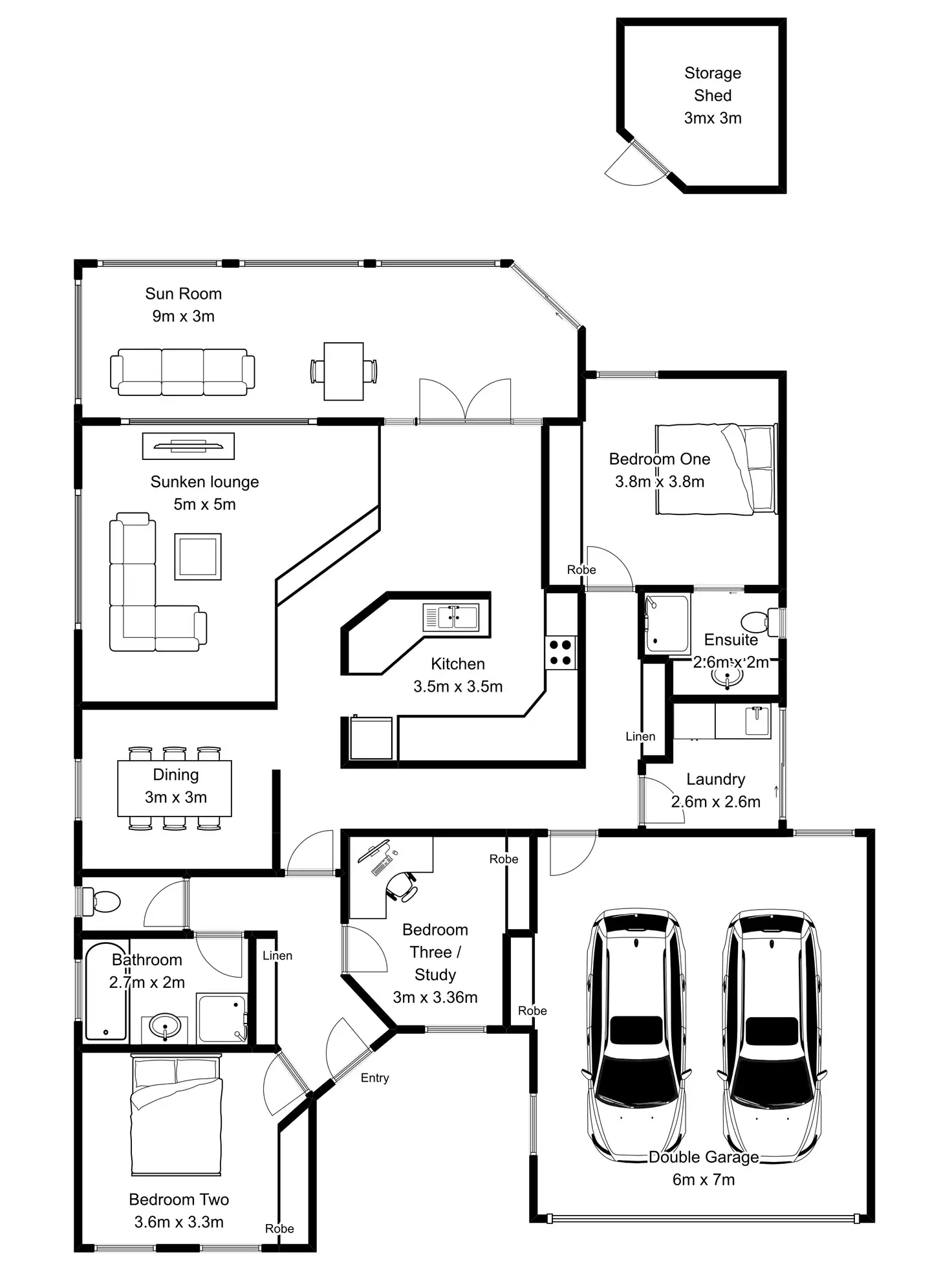 3 Bed • 2 Bath • 2 Car • 677m²