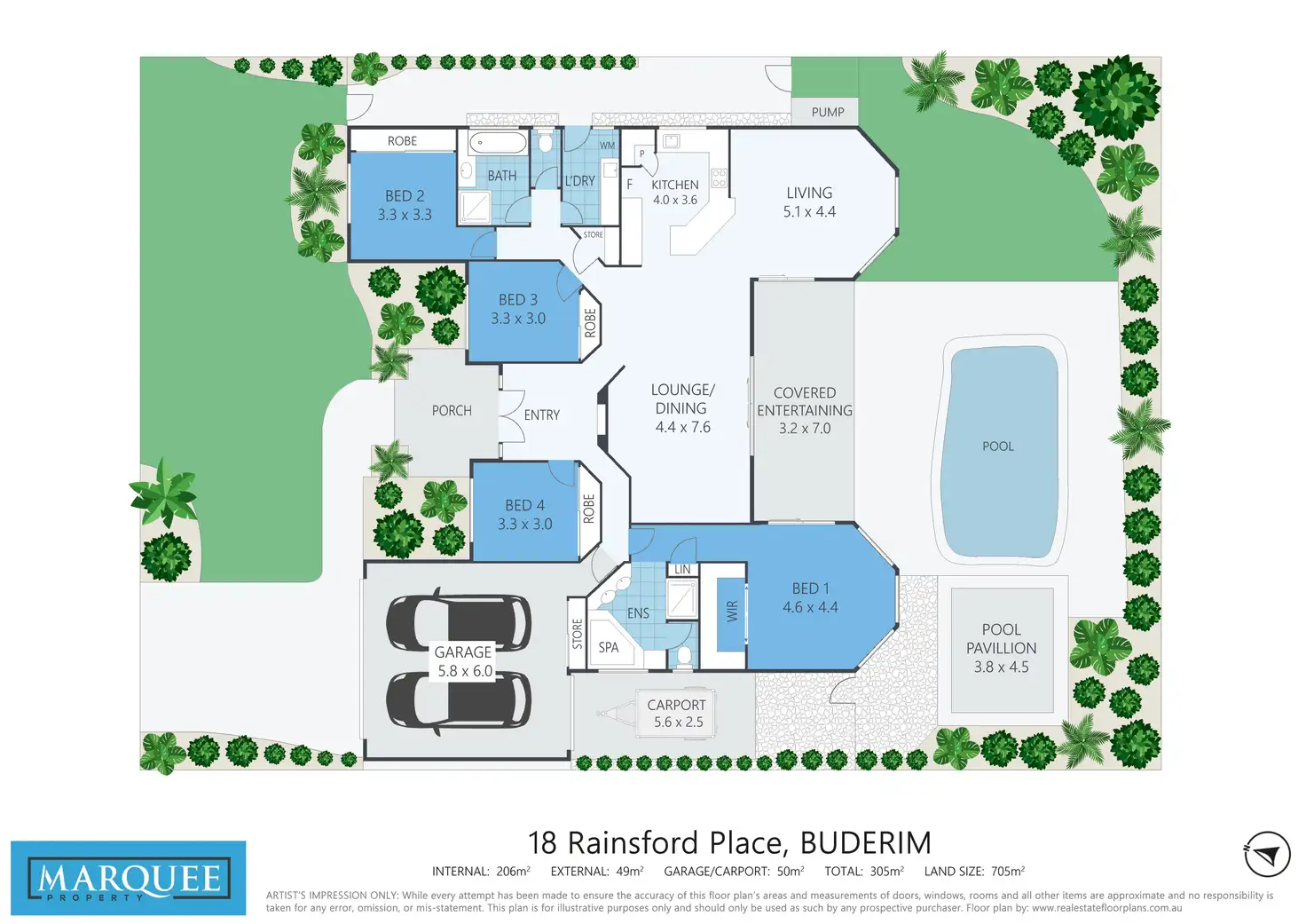 - Large covered entertaining area with private outlook over the stunning inground pool and amazing poolside pavilion