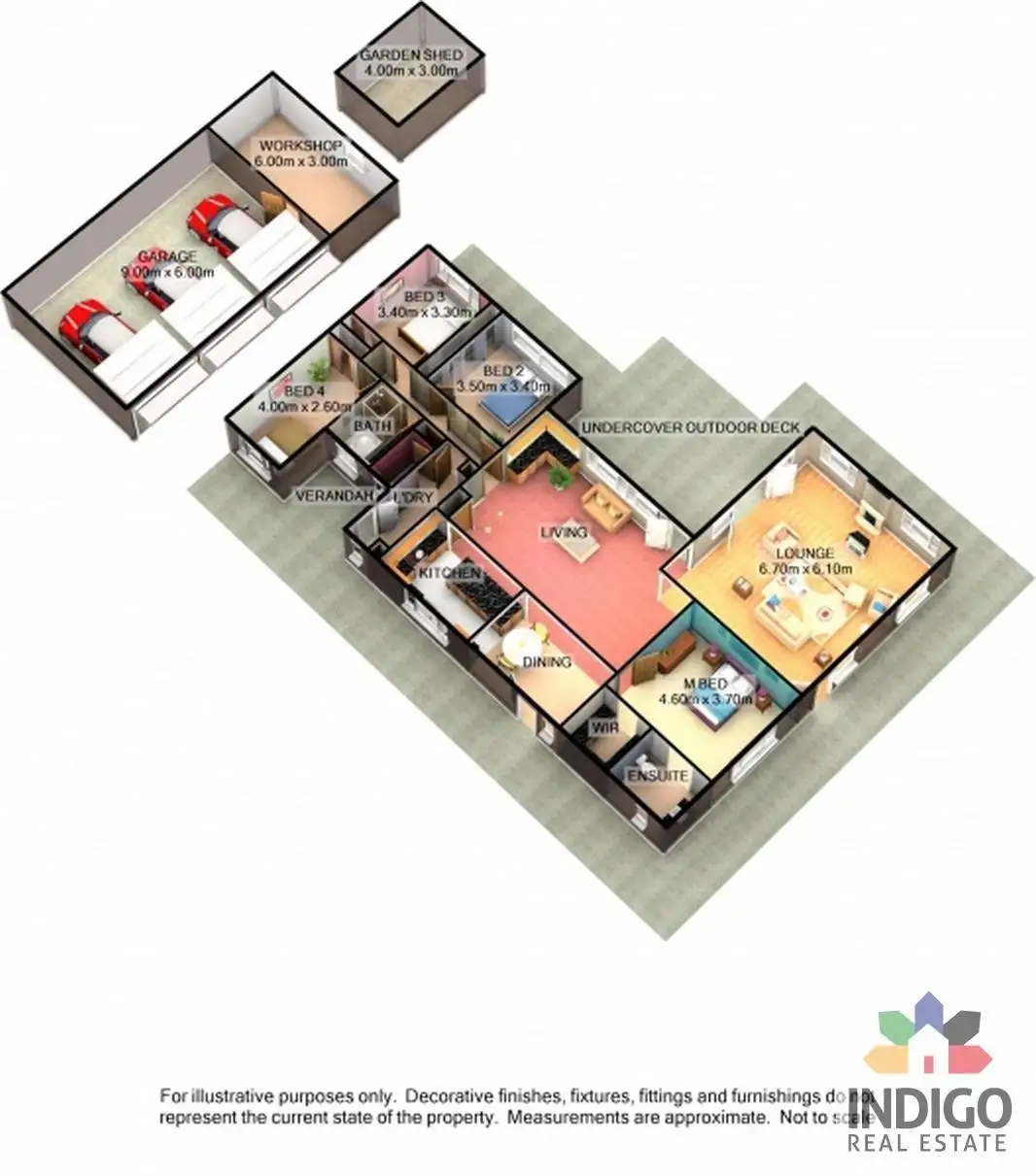 The large open-plan living area includes a spacious and updated kitchen featuring stone benchtops, central timber top island, electric cooking, dishwasher, soft-close drawers and plenty of storage. The adjacent dining area is generously sized and also provides access to the spacious rear undercover deck enveloping three sides of the home. There is also a built-in study nook.