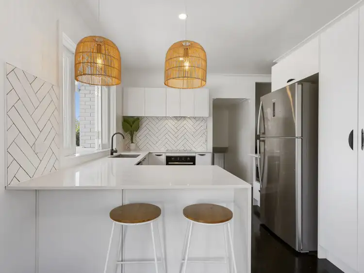 The modern kitchen was recently renovated and will appeal to the chef in the house, with stainless steel appliances including electric cooktop, Euromaid oven, rangehood and dishwasher. This beautiful kitchen features plenty of bench space, overhead cupboards and a built-in pantry for your convenience. Head out onto the deck where you can enjoy your morning coffee or pass food and drinks through the kitchen servery to your guests whilst hosting a BBQ on the weekend.